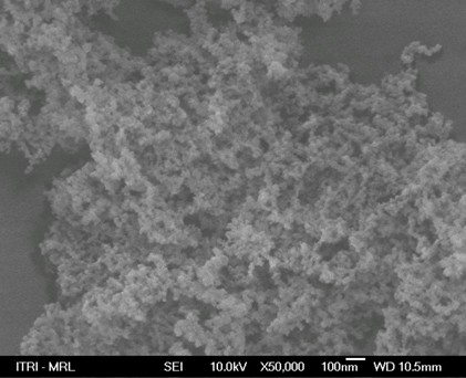 利用溶胶凝胶法于有机溶剂中,合成出如下图所示粒子直径在100奈米以下的胶状体,并结合其他高分子材料形成奈米钻石镀膜溶液。